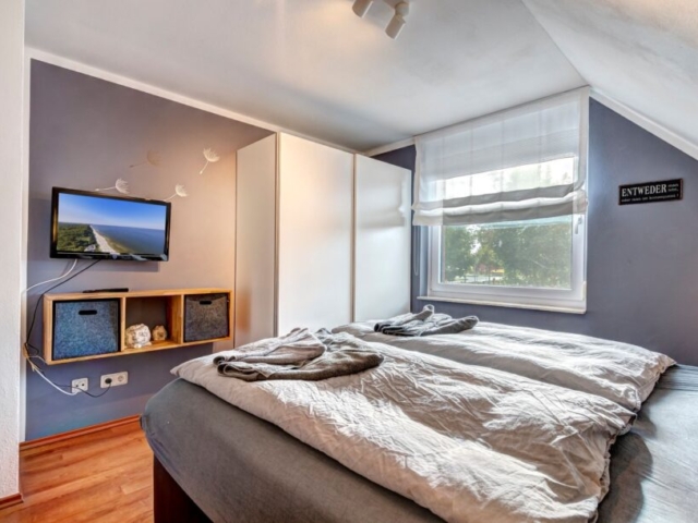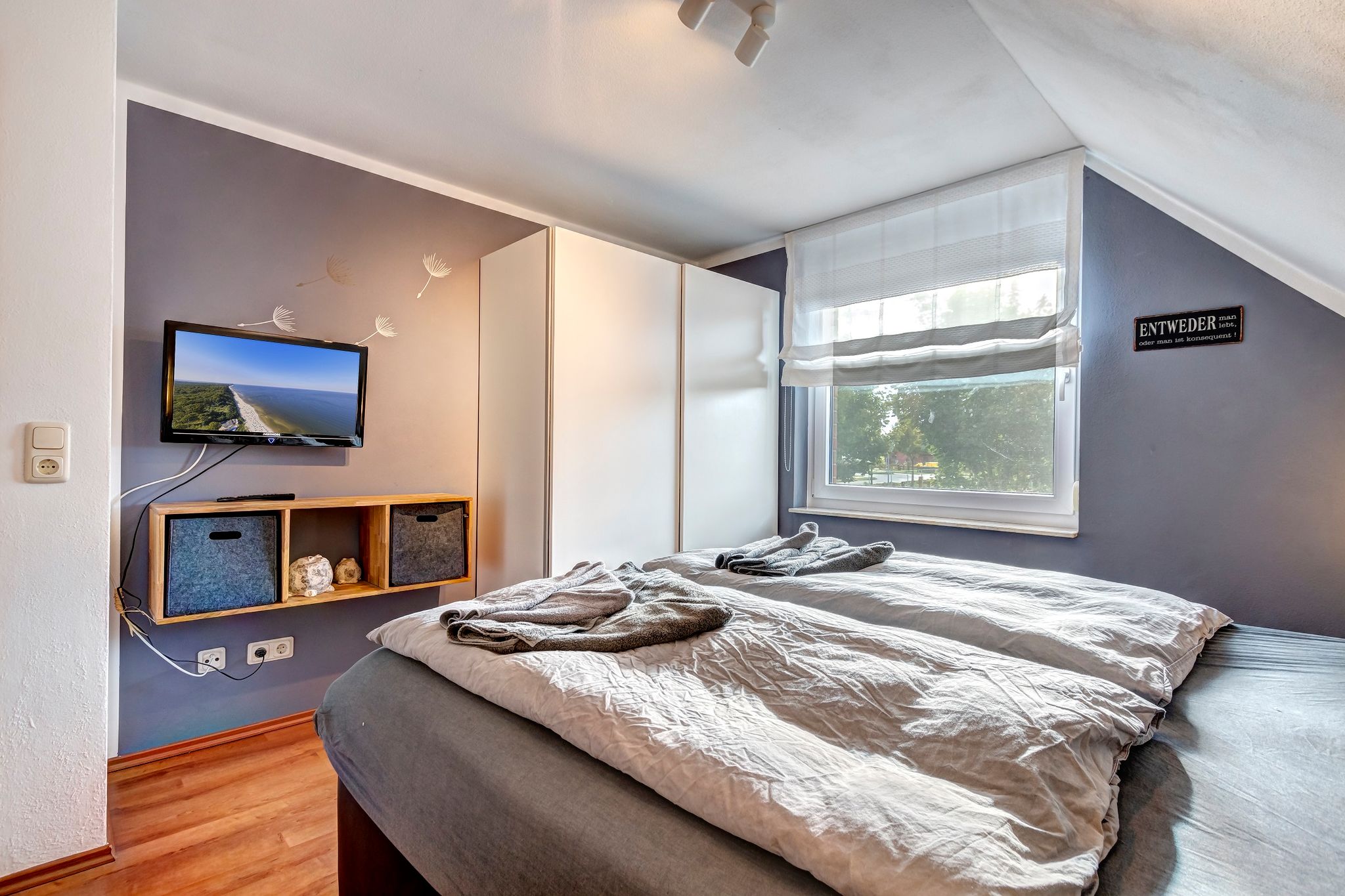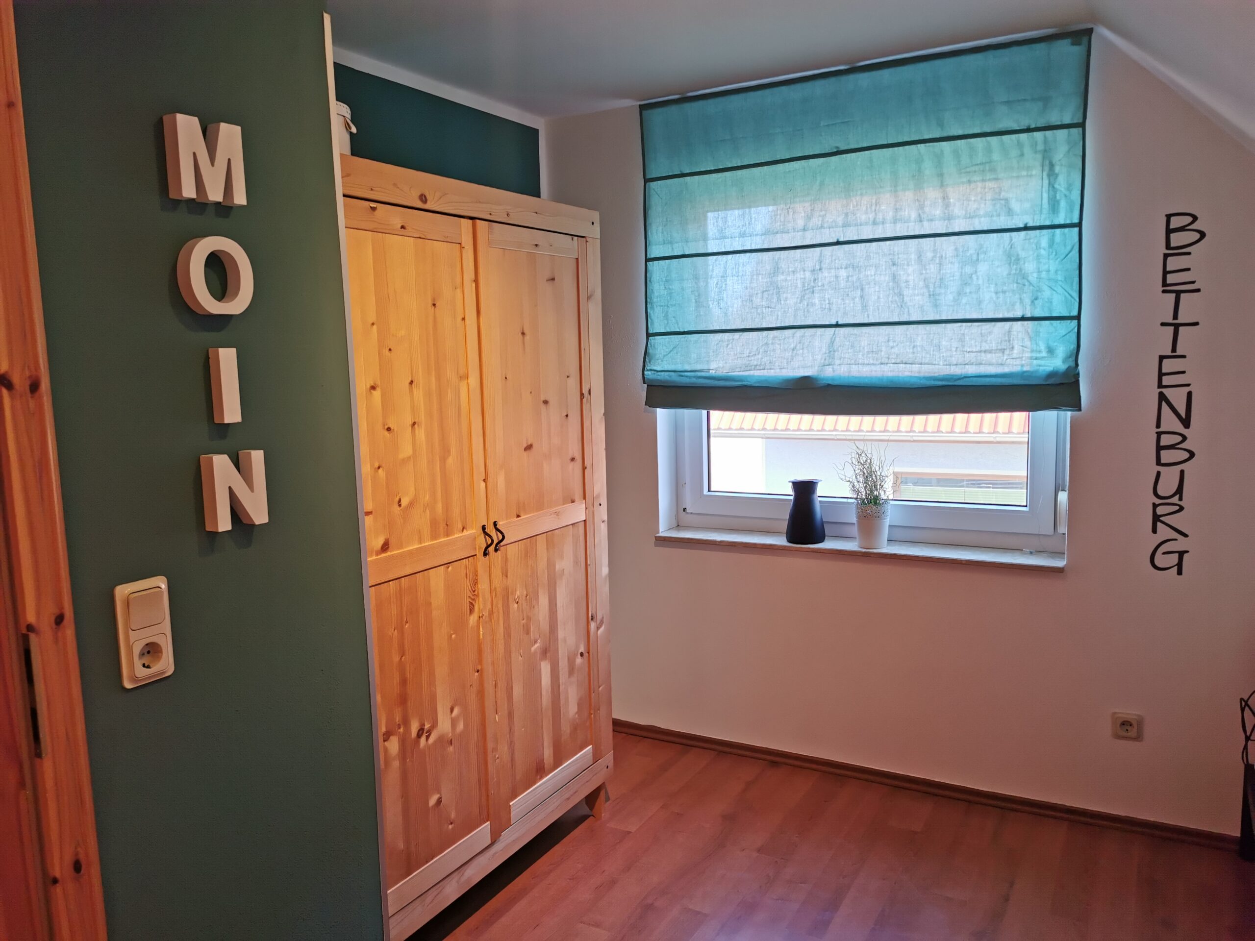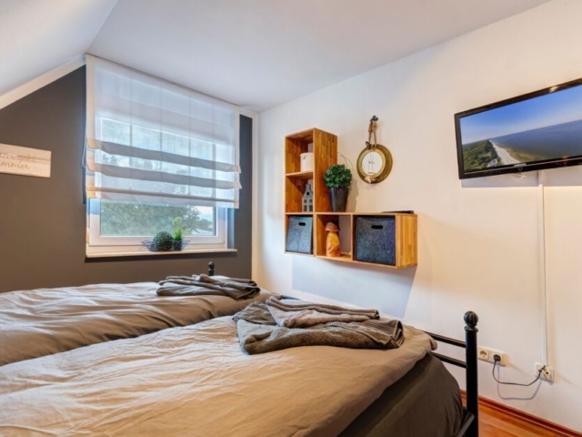 Kapitänszimmer: Bockspringbett, Nachtkästchen, Schrank, Kinderbettchen, TV, Fliegengitter
